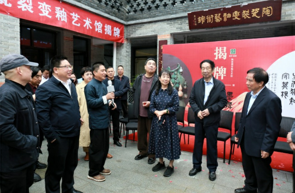 由书法家史宝银题写馆名的“郑州官窑陶瓷裂变釉艺术馆”正式揭牌。该艺术馆集研究、创作、展示与体验于一体,它的的落成不仅标志着郑州官窑陶瓷文化的传承与创新迈入新阶段,更成为黄河文化旅游带上又一闪亮的非遗新地标。