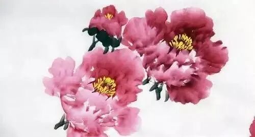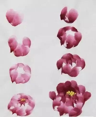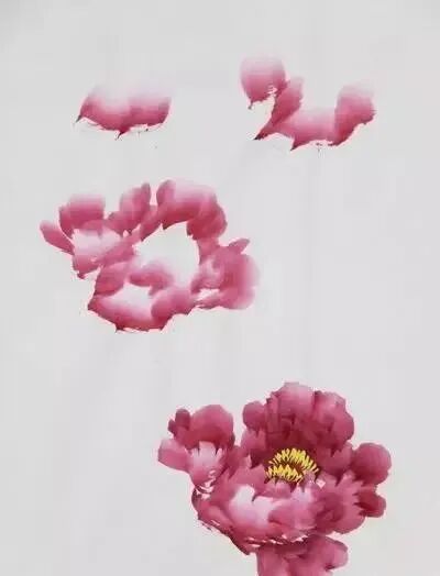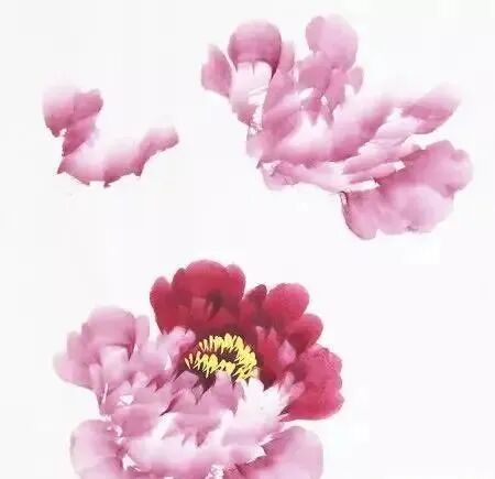 调白粉加淡曙红,用侧锋画出亮部,注意用笔要大小兼用,笔痕要有变化,有节奏。画花的中心部位时,笔尖扫一点胭脂,点出层次。使颜色自然渗化,见笔触,用心收拾外形,干后点花蕊。