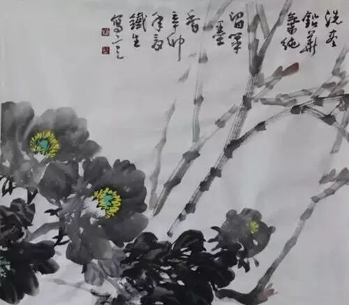 画墨牡丹有三种调色法:一是用清水调墨,自然渗化;二是用粉调墨,增加厚度;三是用胶调墨,增加亮度。每种调墨法,要多实践,多试验,从中体会不同的笔墨情趣。