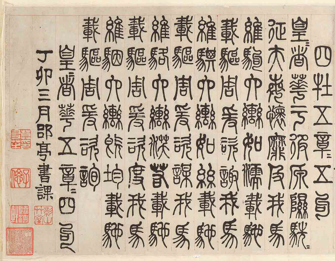 款識:丁卯(1867年)三月,郘亭書課。